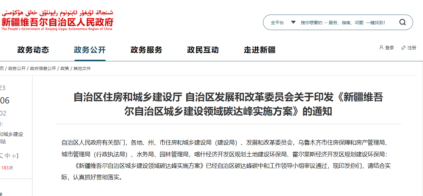 推動城鄉(xiāng)建設(shè)綠色低碳轉(zhuǎn)型 新疆自治區(qū)發(fā)布城鄉(xiāng)建設(shè)領(lǐng)域碳達峰實施方案