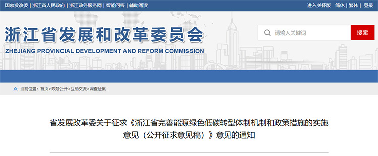 近日,浙江省發展改革委發布關于征求《浙江省完善能源綠色低碳轉型體制機制和政策措施的實施意見(公開征求意見稿)》意見的通知,為全面貫徹黨的二十大精神,加快建設綠色低碳安全高效的現代能源體制機制,促進浙江省能源高質量發展和經濟社會發展全面綠色轉...