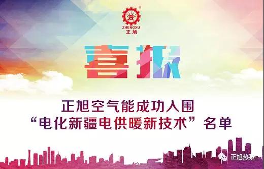 喜報!正旭空氣能成功入圍“電化新疆電供暖新技術”名單