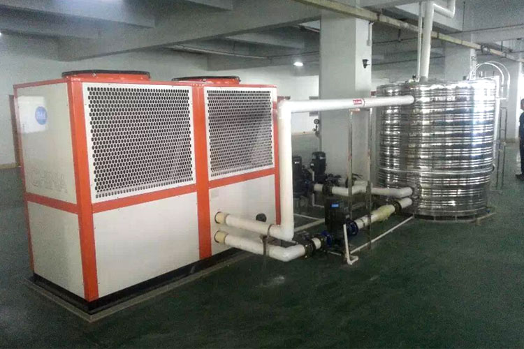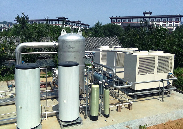 以山東某釀酒廠為例,采用空氣源熱泵高溫熱水系統,由正旭4臺25P復疊高溫熱泵機組構成,供宏濟堂酒窖釀酒使用。項目穩定運行三年,節約能耗節46%以上。