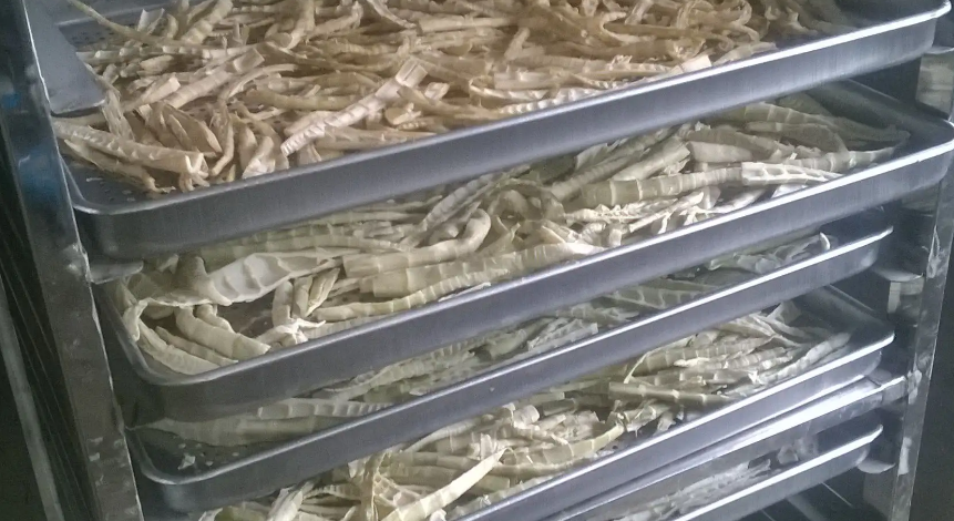 物料盤一般分為網盤、物料框和沖孔盤等,不同物料盤的透氣功能不一樣,適用于不同類型的待烘干物料。網盤透氣性好,網孔大小多樣,一般由不銹鋼鋼絲網制成,適用于塊狀、片狀物料,如竹筍,佛手柑片;物料框由于透氣性差,所以在烘干中使用較少,主要用于核桃、花生等含水量少、出水慢、烘干時間長的物料;沖孔盤易清洗,沖孔大小可根據物料屬性定制,主要適用于桑葚等蒸發出糖分容易產生粘連的物料。