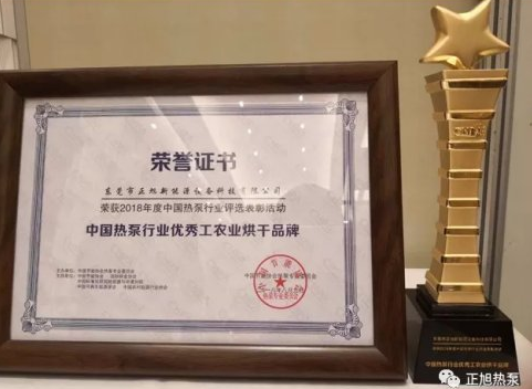 實至名歸!正旭榮膺2018中國熱泵行業優秀工農業烘干品牌