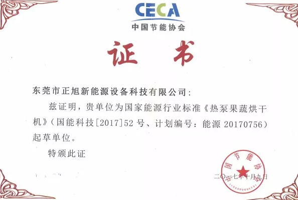 值得一提的是,2017年9月1日,根據“國家能源局2017能源領域行業標準制(修)訂計劃(國能科技【2017】52號)”,由中國節能協會熱泵專委會、中國熱泵產業聯盟組織有關單位和專家在北京召開了“2017七項空氣源熱泵國家能源行業標準啟動會”。期間,正旭獲《空氣源熱泵干燥通用技術要求》主筆起草單位和《空氣源熱泵果蔬干燥機》起草單位。