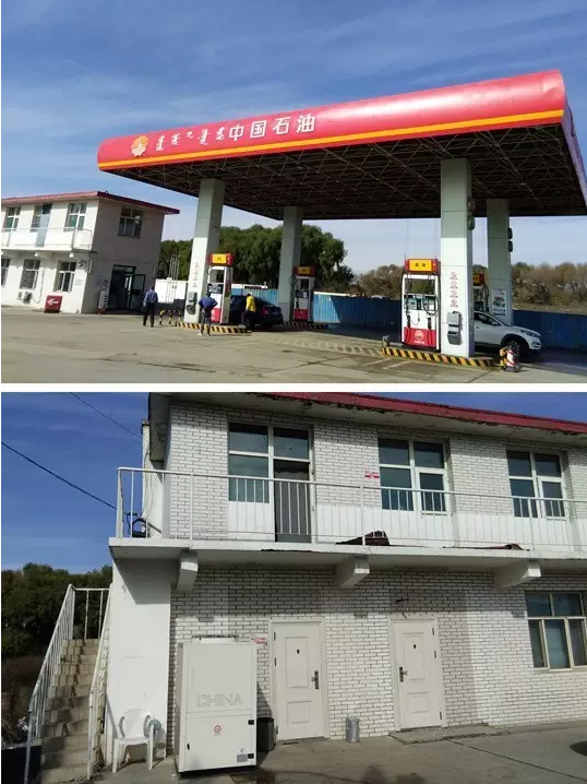 該項目共145座加油站,總面積2.5萬平方米,采用正旭噴氣增焓空氣能熱泵冷暖機組。此技術最大優勢在于處于-29℃的環境溫度,機組仍能正常使用。打破空氣能采暖的地域限制,在技術層面為北方煤改電的大勢推進提供了有力保障。