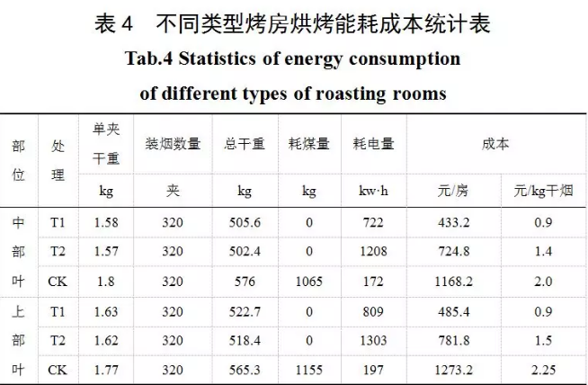 測(cè)定試驗(yàn)房次的用煤總量、用電總量,計(jì)算每千克干煙的能耗成本。