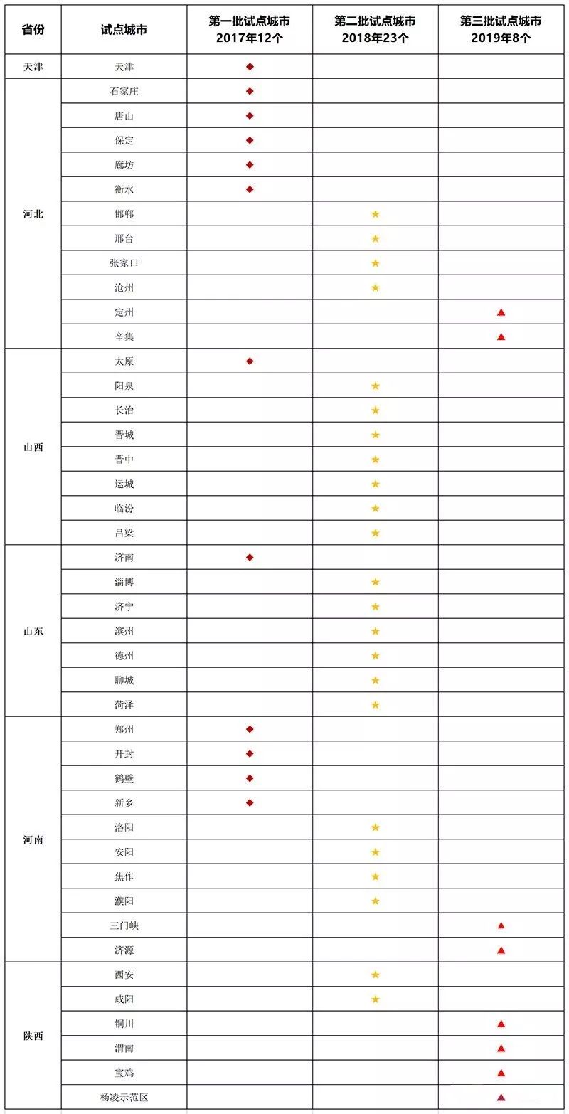 2019年其中新增的8個城市被納入第三批試點范圍,分別為河南省的三門峽和濟源,陜西省的銅川、渭南、寶雞、楊凌示范區,河北省的定州、辛集。河北作為污染最嚴重的地區,推廣力度大。而河南人口巨大,采暖用戶也甚多。