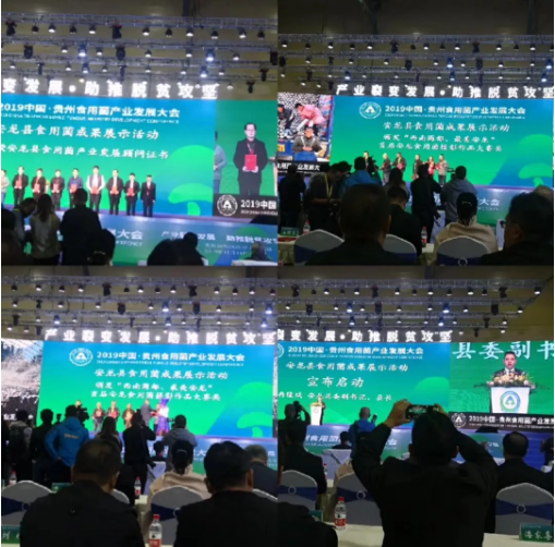 2019中國?安龍食用菌博覽會啟動儀式現場,中國菌物學會理事長郭良棟、安龍縣委常委魏松林等領導、專家發表演講。