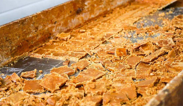 傳統(tǒng)的加工紅糖一般會經(jīng)過榨汁、開泡、趕水、出糖、打沙、成型等基本步驟,然后經(jīng)過傳統(tǒng)柴火灶旺火熬制6小時,不斷攪拌讓水份慢慢的蒸發(fā)掉,趕水、打沙等18道工序熬制。