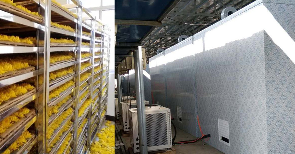 以正旭在河南信陽的菊花烘干項目為例,正旭團隊進行多次實地考察,考慮到菊花作為花類,烘干需要保證菊花成品色澤鮮美,外形完整,所以正旭團隊最終決定投入15臺7P熱泵烘干分體機。熱泵烘干分體機安裝便捷,可以根據用戶需求靈活選擇安裝地點,烘干效率高,經過熱泵烘干分體機烘制出的菊花清香而有甘味,花色鮮艷。
