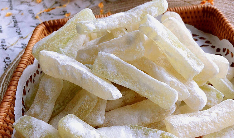 冬瓜糖,顧名思義是一種冬瓜制品,它是將新鮮的冬瓜經(jīng)過一系列處理工序最終制成的一種甜食。冬瓜糖口感細膩綿柔,色澤潔白,還具有冬瓜特有的清香。冬瓜本身具有清熱解暑的功能,冬瓜糖也不例外,閑來無事,可以把冬瓜糖作為家中常備小零食。