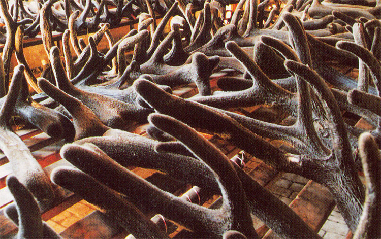 1.鹿茸采割:采割鹿茸過程要快,時間最好把控在5小時內。其次,新收割的鹿茸需倒置24小時,使血液和營養充分流到鹿茸頂部。