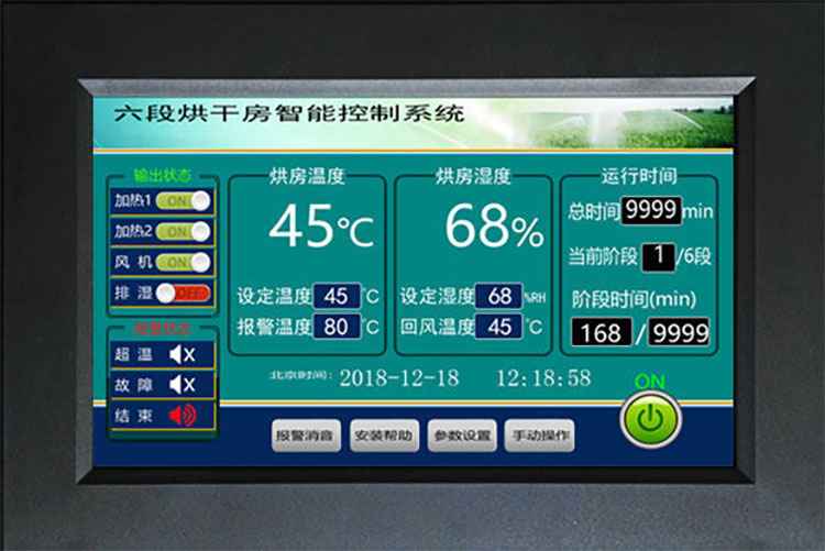 熱泵烘干機采用智能分段烘干的方式模擬自然干燥,是一種比較溫和的烘干方式。前期只需根據(jù)物料屬性設(shè)置好不同時間段的烘干溫濕度,系統(tǒng)自動根據(jù)烘干曲線調(diào)節(jié)溫濕度。