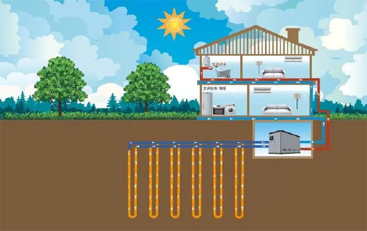 地源熱泵是一種利用淺層地?zé)豳Y源實(shí)現(xiàn)制熱及制冷的高效節(jié)能設(shè)備。地源熱泵同樣是通過(guò)輸入少量電能,將土壤中的低溫?zé)崮芟蚋邷匚粺崮苻D(zhuǎn)移,實(shí)現(xiàn)冬季供熱和夏季制冷的需求。即在冬季,把土壤中的熱量取出來(lái),提高溫度后,供給室內(nèi)采暖;在夏季,把室內(nèi)的熱量取出來(lái),釋放到地能中去。與空氣源熱泵一樣,地源熱泵的最大優(yōu)點(diǎn)也是節(jié)能效果顯著,產(chǎn)生同樣的制冷取暖效果時(shí),地源熱泵比一般中央空調(diào)省電30%-40%。且無(wú)室外排熱、冷暖兼用、無(wú)室外機(jī),不影響建筑外觀。