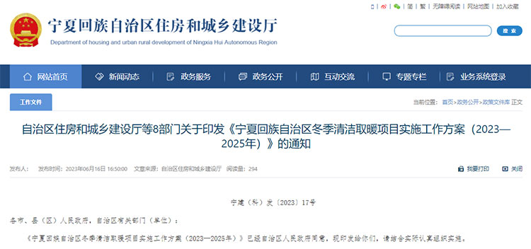 為加快推進寧夏地區(qū)冬季清潔取暖項目建設(shè),如期完成清潔取暖各項目標(biāo)任務(wù),實現(xiàn)城鄉(xiāng)居民清潔取暖、溫暖過冬,持續(xù)改善大氣環(huán)境質(zhì)量,助推加快區(qū)域經(jīng)濟綠色發(fā)展,寧夏回族自治區(qū)于近日發(fā)布了《寧夏回族自治區(qū)冬季清潔取暖項目實施工作方案(2023—2025年)》(以下簡稱“方案”)。