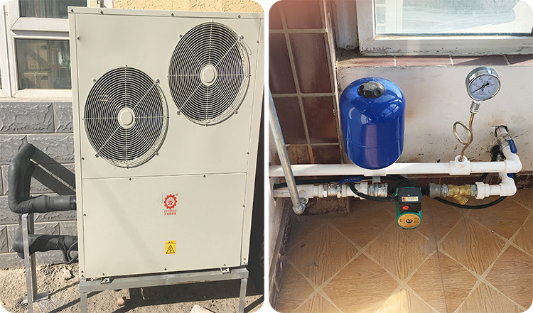 確定好設備類型后,再根據(jù)占地面積和單臺功率,計算所需要的采暖熱泵數(shù)量,一般宜雙不宜單。比如可以采用2臺5匹機組的,就不建議采用1臺10匹機組, 這樣的好處是能保證系統(tǒng)的穩(wěn)定性,即便有一臺出故障也能通過控制供暖區(qū)域確保部分區(qū)域供暖,而不至于整個供暖系統(tǒng)癱瘓。