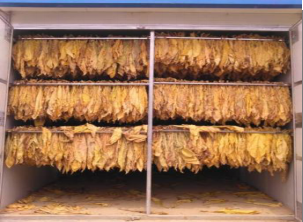 (五)是煙葉干筋階段高溫度要控制在65-68℃,濕球溫度控制在40-43℃,以增進煙葉顏色和色度,同時減少煙葉香氣物質的揮發散失。